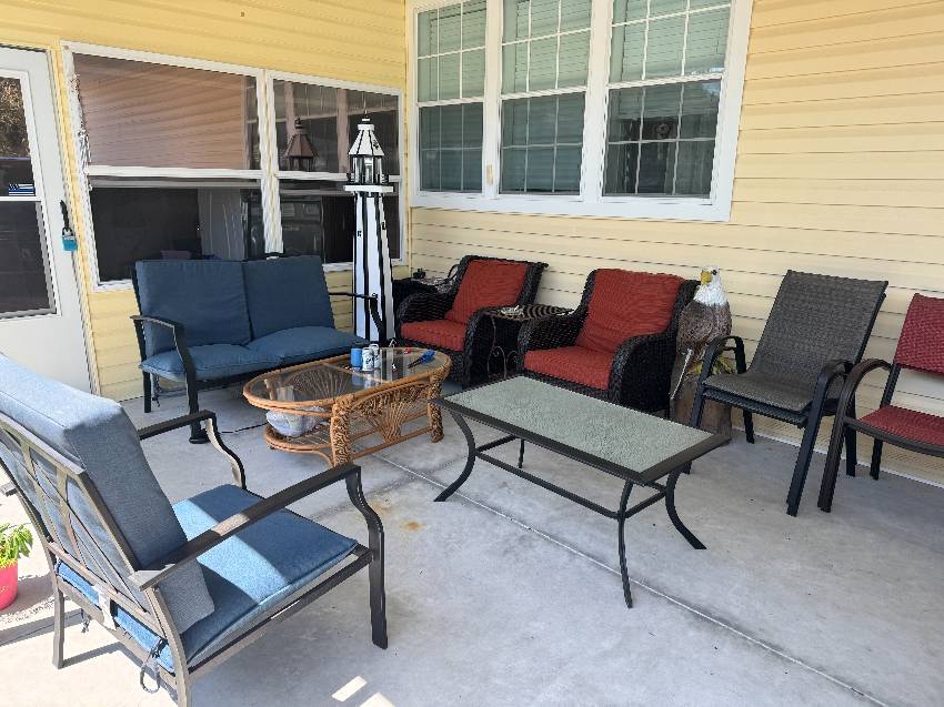 This charming 2015 home features 3 bedrooms and 2 baths, nestled in a peaceful 55+ country-style community perfect for a relaxing and well-deserved retirement. With approximately 1,248 sq ft of living space, the eat-in kitchen seamlessly connects to the cozy living room, which includes a fireplace heater. All GE appliances, including a dishwasher, are included. The spacious primary bedroom, located on one side of the home, boasts a walk-in closet and a bathroom with a walk-in shower and double sink vanity. The guest bedrooms are positioned at the front of the house, along with a guest bathroom featuring a shower/tub combo and single sink vanity. Outside, there's a screened-in porch with ample seating and an attached shed for extra storage. While all information is considered reliable, we encourage prospective buyers to conduct their own personal inspections for a comprehensive understanding of the property's condition and measurements. Please note that American Mobile Home Sales of Tampa Bay Inc. cannot guarantee the accuracy of this information. As a buyer, you will be responsible for all closing costs, sales tax, and title transfer fees associated with the purchase. The buyer assumes full responsibility for obtaining all current rates for lot rent, fees, and any pass-on costs, as well as to familiarize yourself with the lease agreement and community regulations. For these details, please reach out to the community or park manager directly. American Mobile Home Sales of Tampa Bay Inc. is not responsible for quoting said fees or policies. |