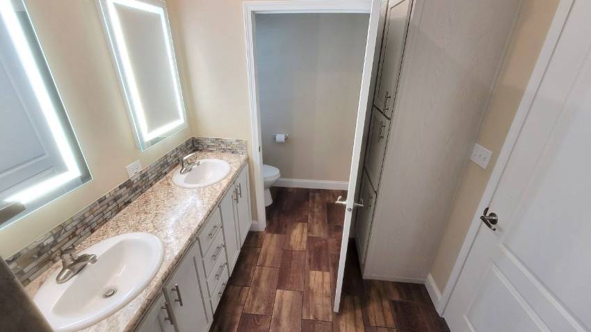 Features a large WALK IN CLOSET and a luxurious ensuite with TILE SURROUND WALK IN SHOWER, double vanities, LED lit MIRRORS, linen storage, and a private water closet with a COMFORT HEIGHT COMMODE.